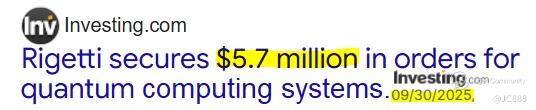 On 30 Sep 2025, RGTI said it had purchase orders totaling $5.7 million for 2 of its 9-qubit Novera quantum computing systems. (see below)