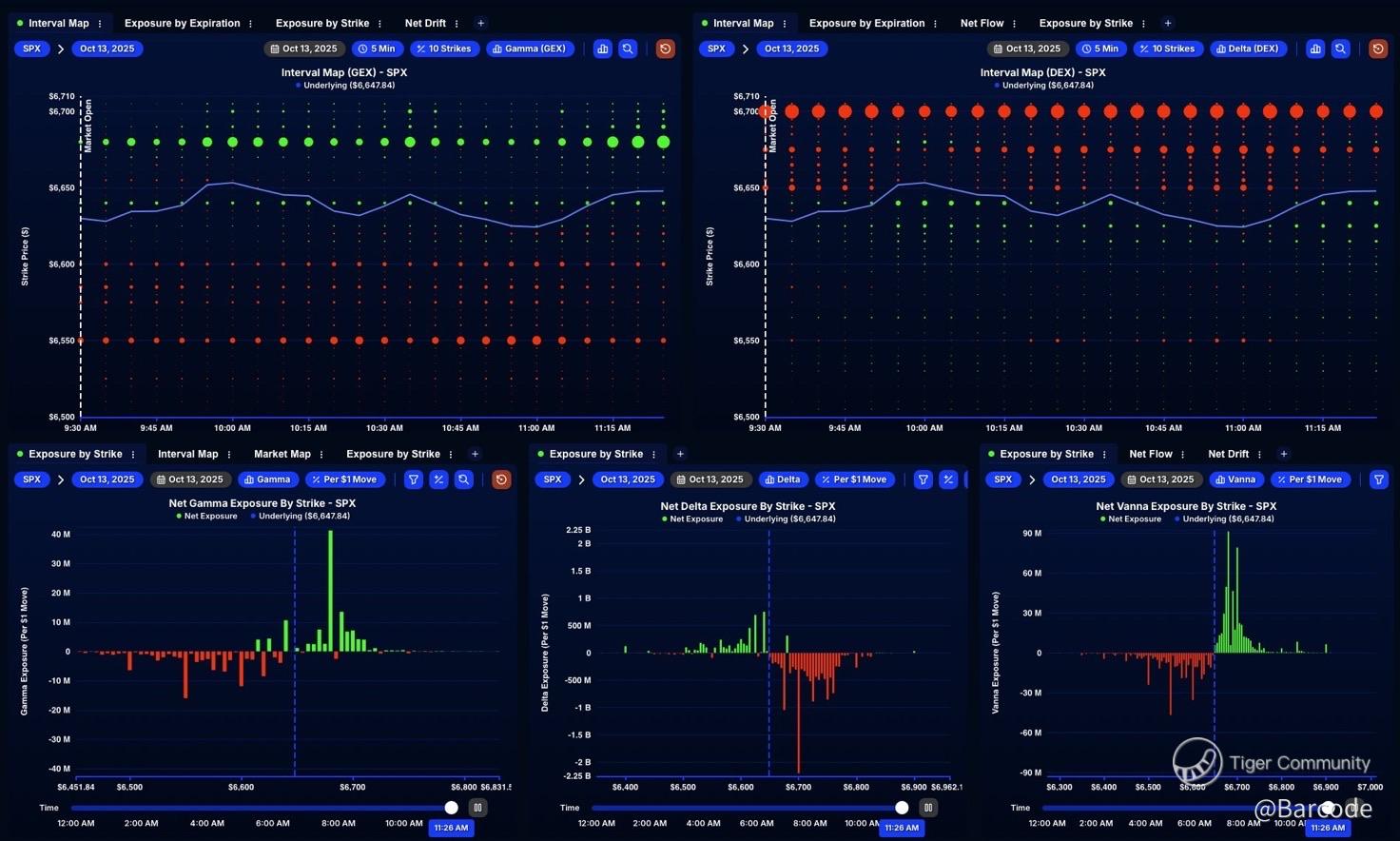 $S&P 500(.SPX)$ $Cboe Volatility Index(VIX)$ ๐จ๐ Exposures are conflicting on $SPX for the 0DTE expiry. The $6,680 strike holds strong positive GEX while $6,700 carries heavy negative DEX. Watch closely for any shifts as a flip in negative DEX could trigger a squeeze higher.