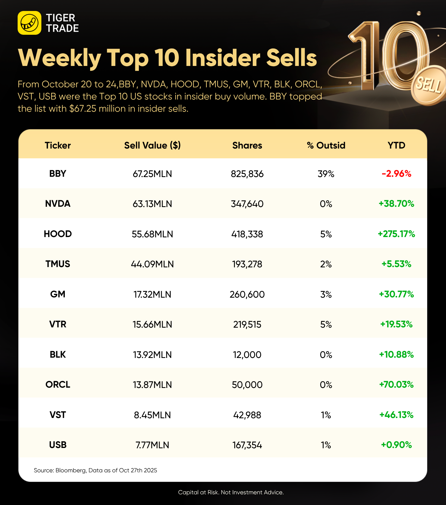 👇🤔Weekly Top 20 Insider Sells: BBY, NVDA, HOOD & More