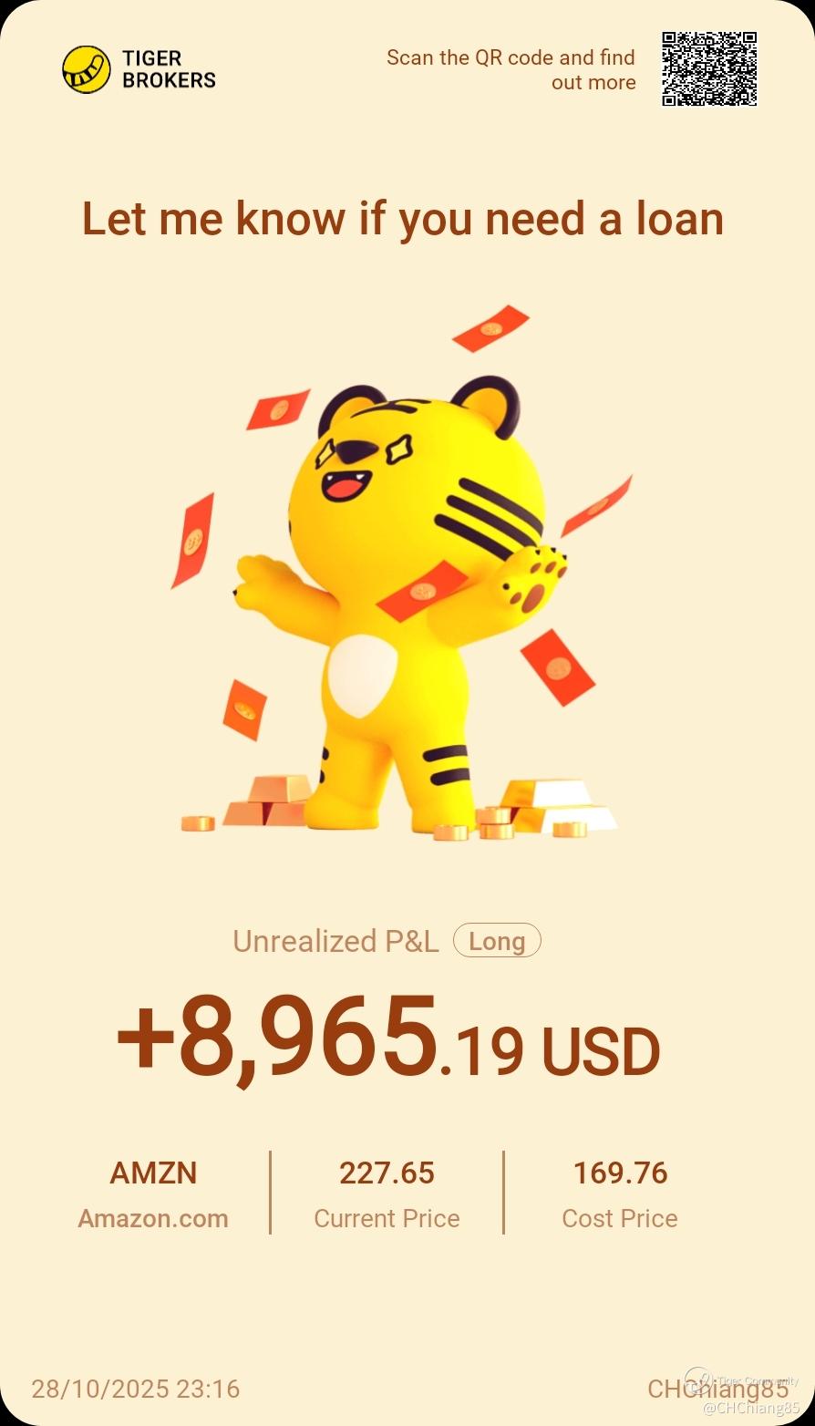 $Amazon.com(AMZN)$ one of my better performing stocks. Have been accumulating Amazon since 2021. There is high potential growth of the businesses of the e-commerce giant due to the cloud and AI businesses. Looking forward to higher gains.