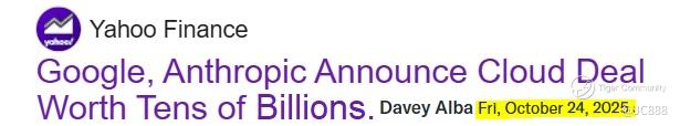 On 24 Oct 2025, it was confirmed that GOOG will supply up to 1 million of its specialized AI chips to Anthropic PBC. (see below)