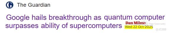 On Wed, 22 Oct 2025 - GOOG reported a breakthrough in quantum computing (QC) after developing an algorithm that performed a task beyond the capabilities of conventional computers. (see below)