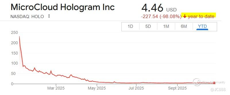 HOLO however, remains down approximately -98.08% YTD following volatile trading typical of micro-cap tech speculative plays. (see below)
