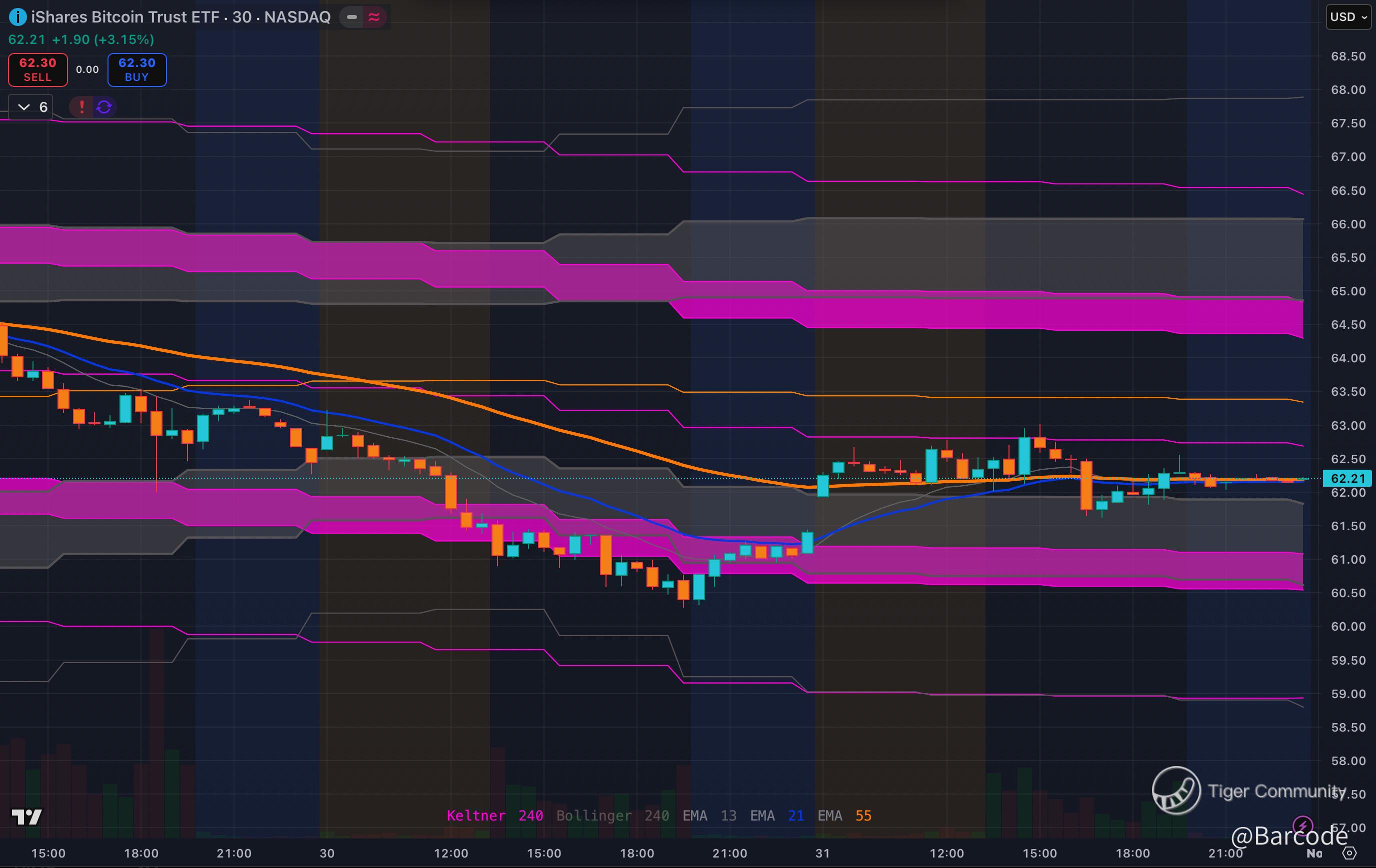 I’m seeing a clear divergence between sentiment and structure. $IBIT’s Q-Score just slid to 3, its weakest reading in over a month, even as $296M in positive GEX keeps institutional hedges alive. The spot chart shows compression near $62 with Keltner resistance at $64.20 and downside liquidity pooling near $60.