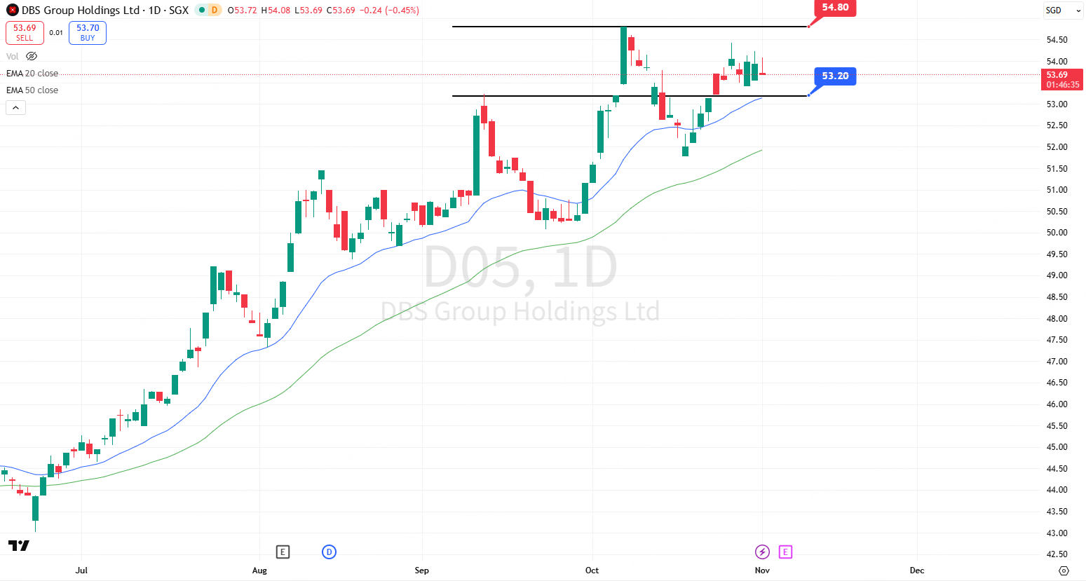 DBS: Holding $53.20–$53.60 Key to Retest $54.80 High