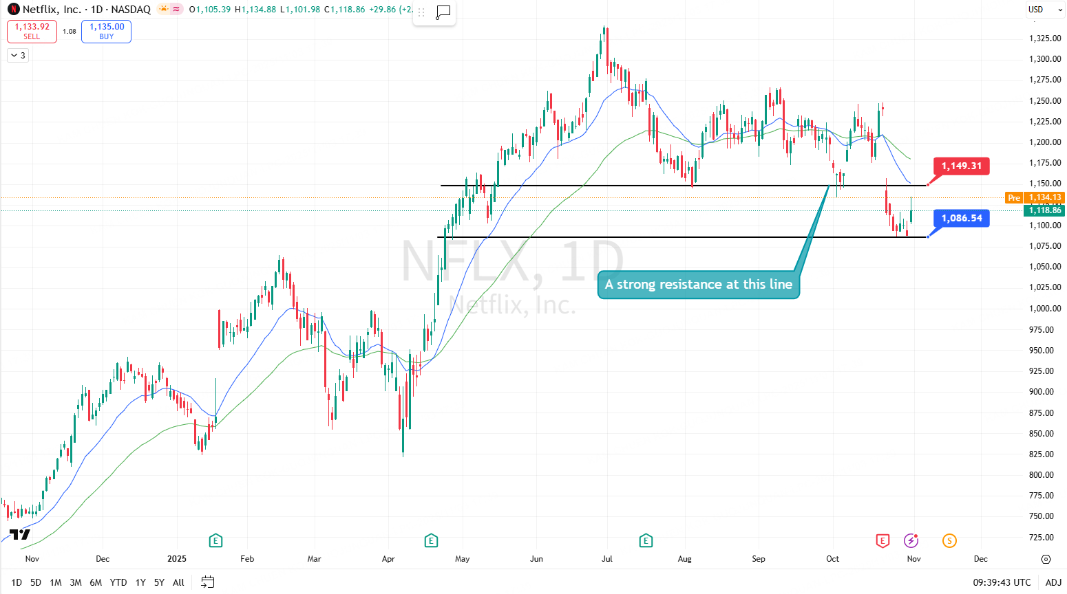 NFLX: Oversold Bounce Builds — Reclaiming $1,150 Key to Unlock $1,180–$1,220 Zone
