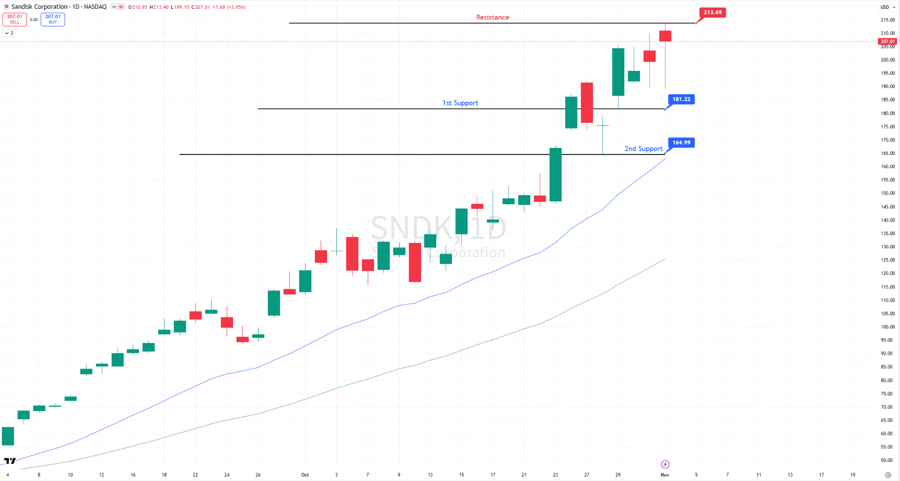 SNDK: +3.9% as NAND Rally Extends; Bulls Eye $220–$230 Target