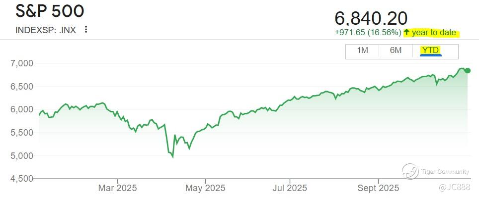 At the close of Fri, 31 Oct 2025’s session, the index was at 6,840, up +0.2%, while year-to-date the S&P 500 has rallied +16.56%. (see below)