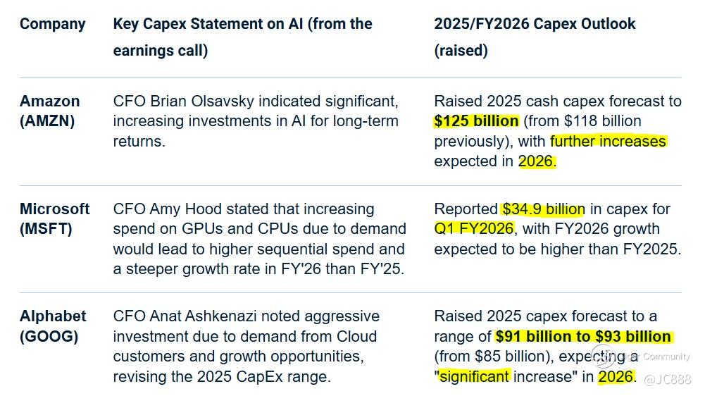 During recent earnings calls, AMZN, GOOG & MSFT have all announced that they would increase their capex to support growing demand for AI and cloud services. (see below)