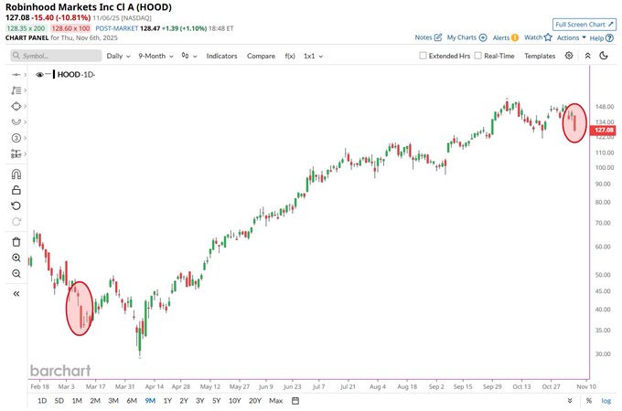 Robinhood $HOOD plunges by more than 10%, its worst day since March 10 📉📉