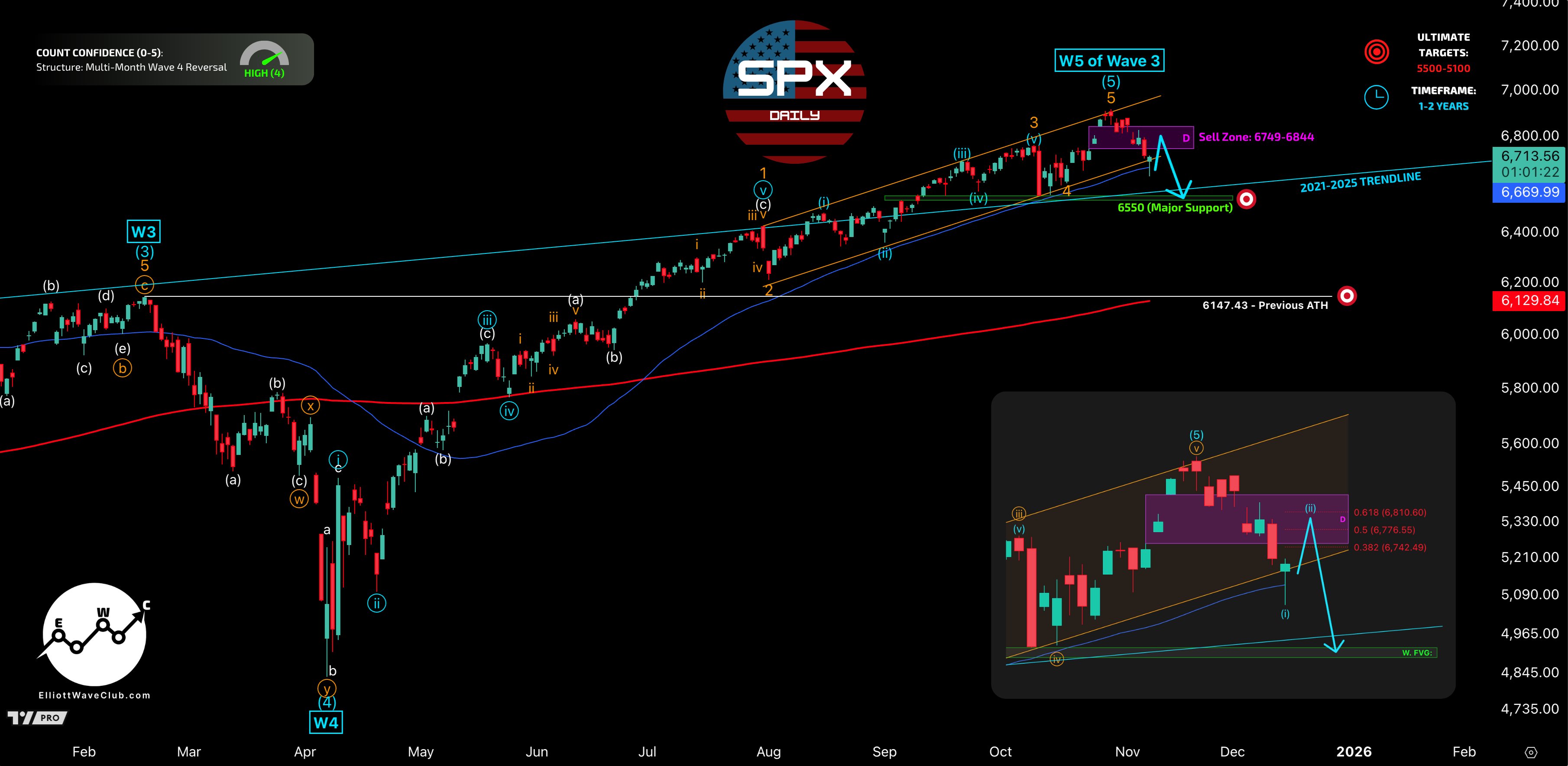 Below 6550 → begins the Wave 4 pullback targeting 6150.