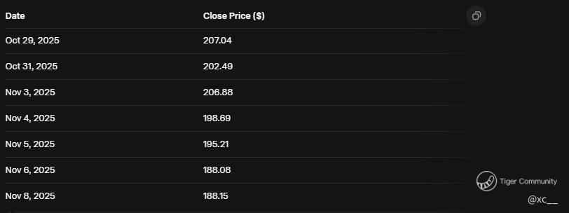 Now, the big question: Will these curbs shove Nvidia's stock down to $170? ๐ Recent weeks have been brutal, with shares tumbling over 16% in a sharp crash, erasing nearly $800 billion in market value โ the steepest drop of 2025 so far. As of today, NVDA sits at $188.15, up a tiny 0.04% but far from its 52-week high of $212.19. ๐ฉ Check out this snapshot of the rollercoaster: