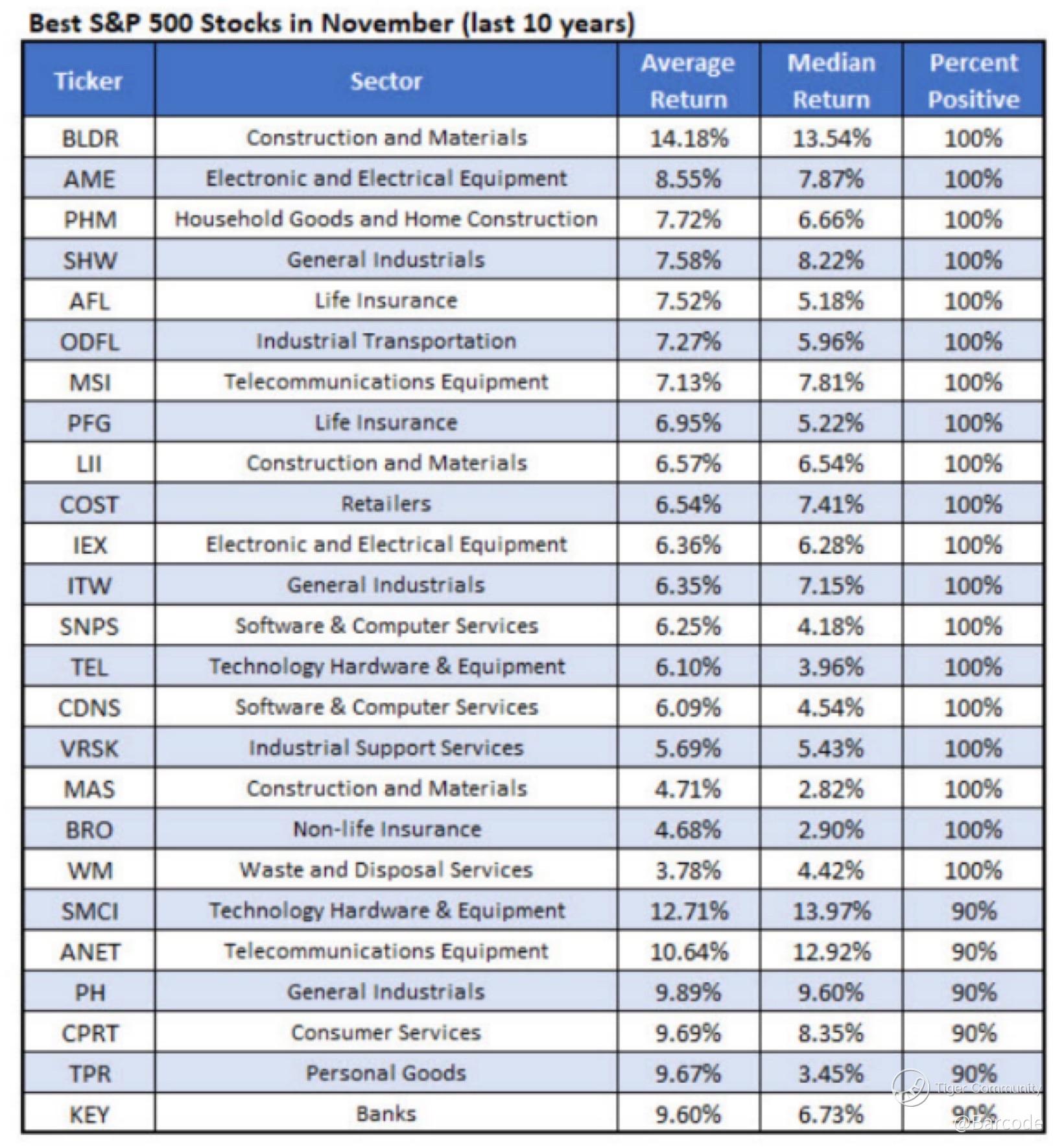 Within this elite November performance group, every stock has posted positive returns in 9–10 of the past ten Novembers, but liquidity separates the true leaders.