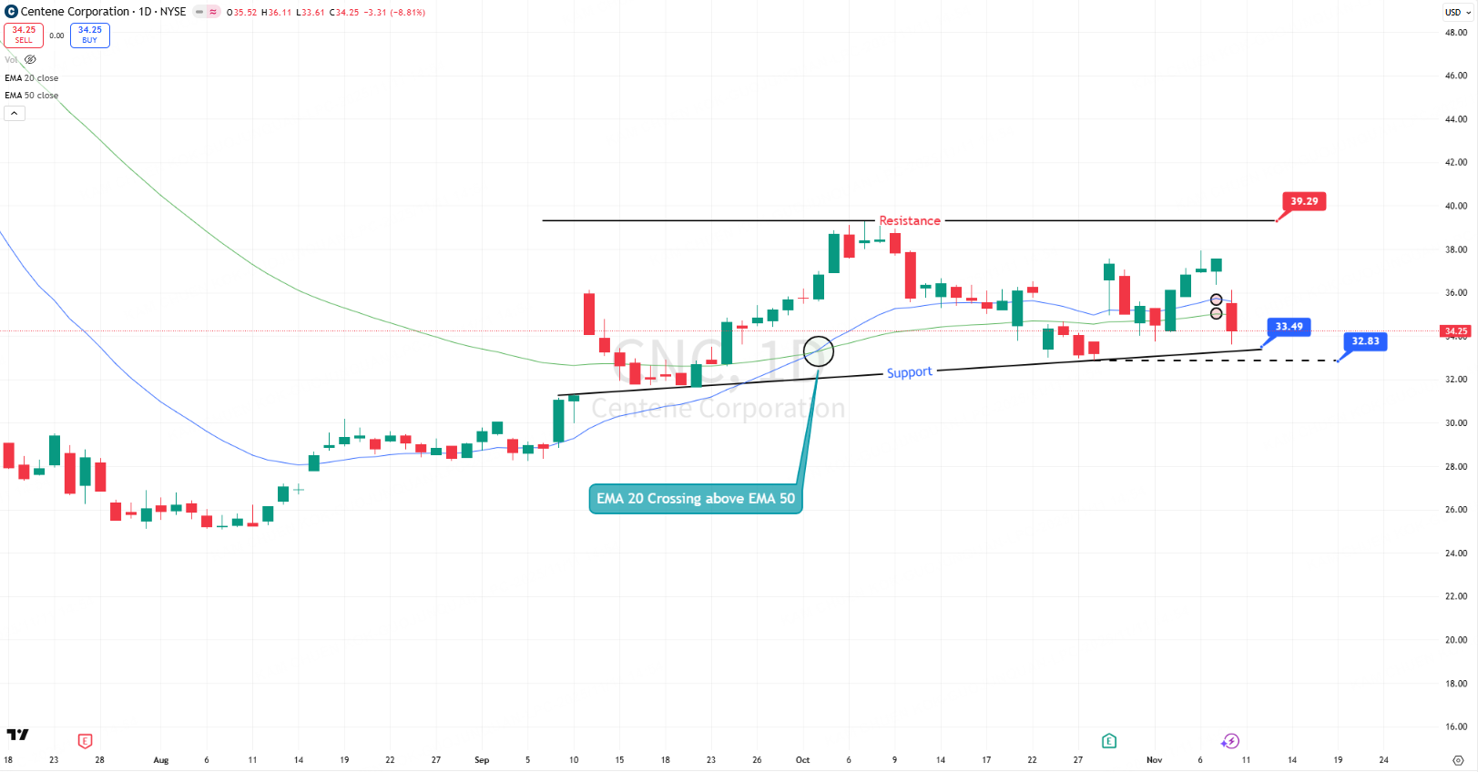 Centene Breaks Down After Earnings, Eyes $33 Support Zone