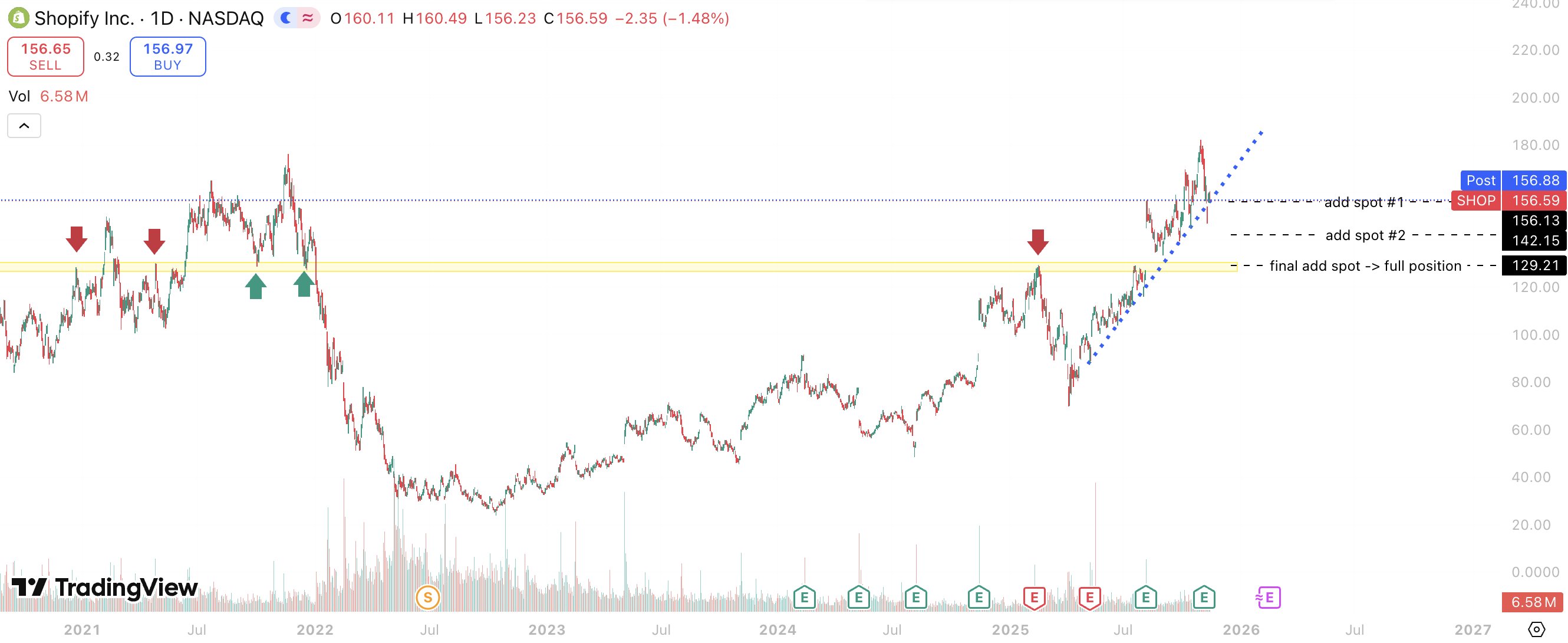 Plan?...first adds at $156 on the trendline, with adds at $142 if it drops short-term, and final adds around $127 if more downside to strong support.