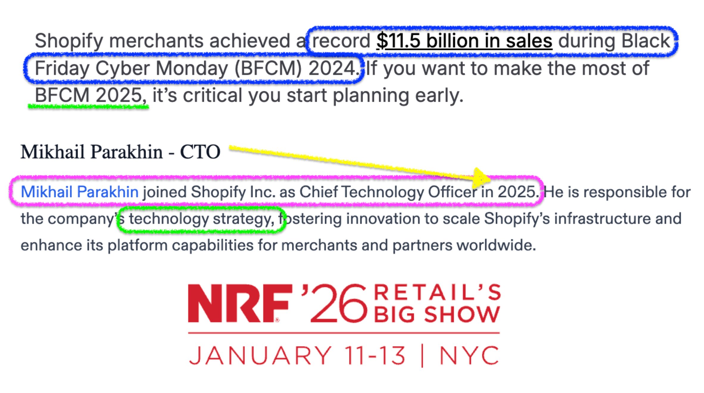 During the holidays last year ('24), merchants broke the previous record for sales, totaling $11.5B during BFCM.