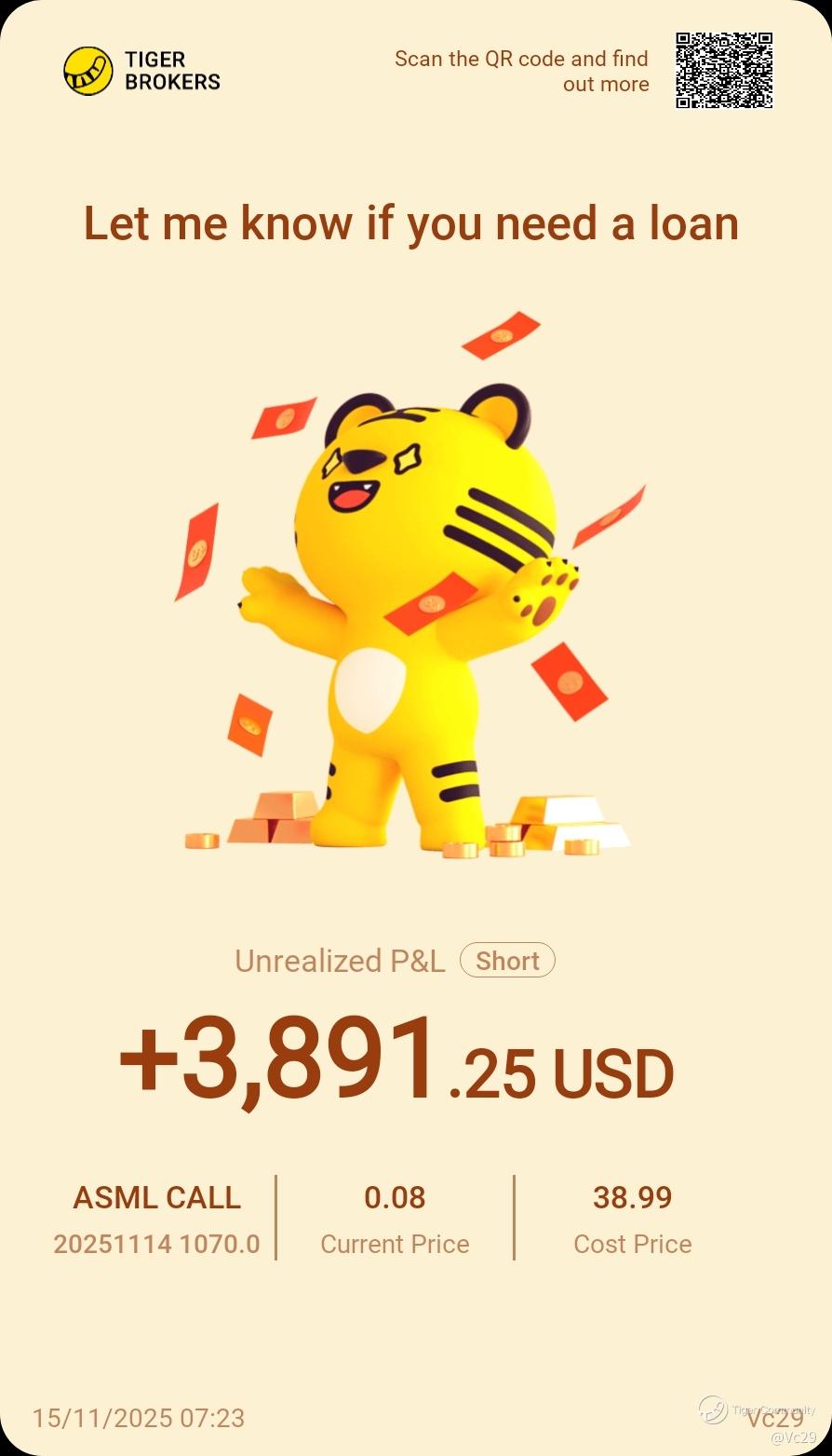 $ASML 20251114 1070.0 CALL$ a quick short on #asml when market is down