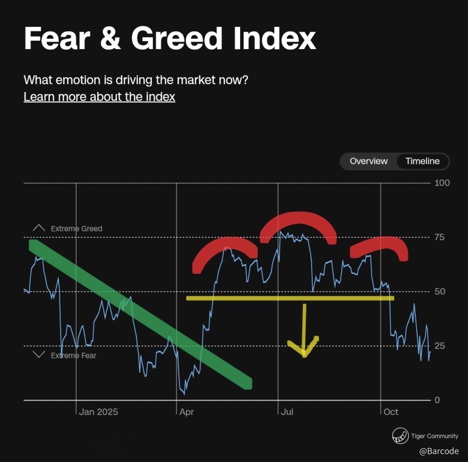 $SPDR S&P 500 ETF Trust(SPY)$ $Meta Platforms, Inc.(META)$ $Coinbase Global, Inc.(COIN)$ Fun Chart Sunday 📉🔥 Fear and Greed just delivered a clean head and shoulders and the measured move hit perfectly. Greed cracked, momentum flipped, and the emotion curve is dropping into a fresh bear channel. Gold moving in opposite direction to $VIX. The fear hedge factor gold showed in early October is gone. $SPX liquidity ~ Gamma flipped negative, the market’s in a put-dominated zone, showing more demand for downside protection. Put volume is slightly outpacing calls (1.16 P/C ratio), and key support sits near 6700.
