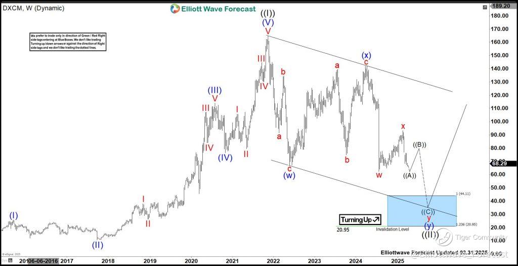 The DXCM favors double correction in weekly from November-2021 high discussed in last article few months ago. It favors weakness started from 2.17.2025 high & expect downside into $44.11 or lower.