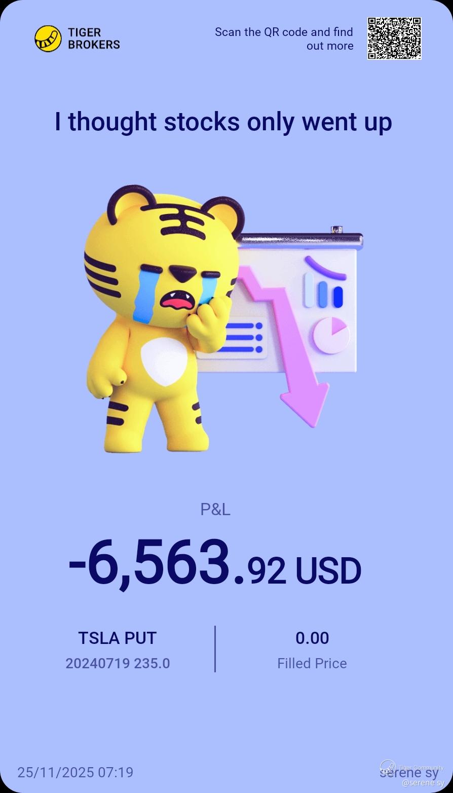 $TSLA 20240719 235.0 PUT$ Lost a total of Us$6563. First time play option. Will never touch again