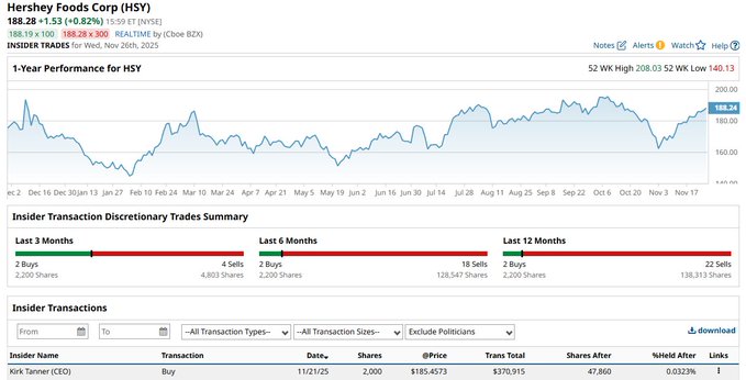 CEO Kirk Tanner just bought $370,000 worth of HSY shares β π