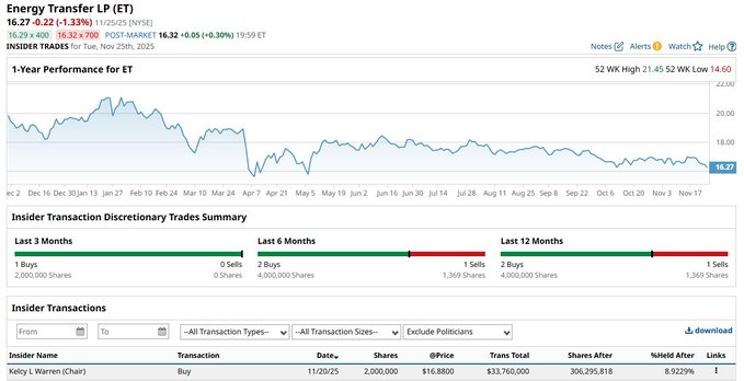 Kelcy Warren, Chairman of the Board, just bought a whopping $33.7 million worth of ET shares