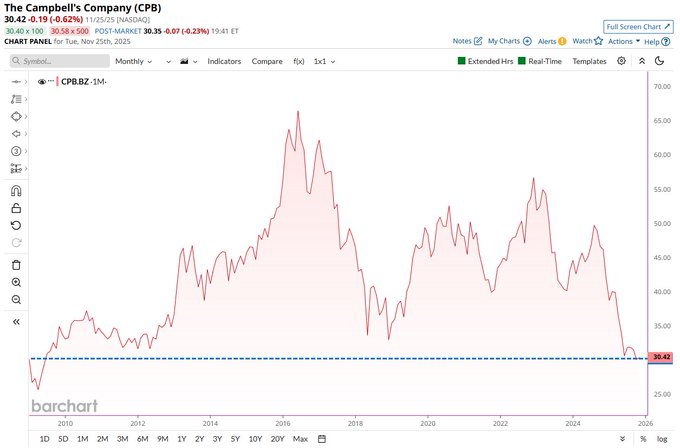 CPB has fallen to prices not seen since the Global Financial Crisis ππ
