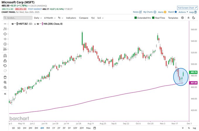 Microsoft with a beautiful bounce off the 200-day moving average ππ