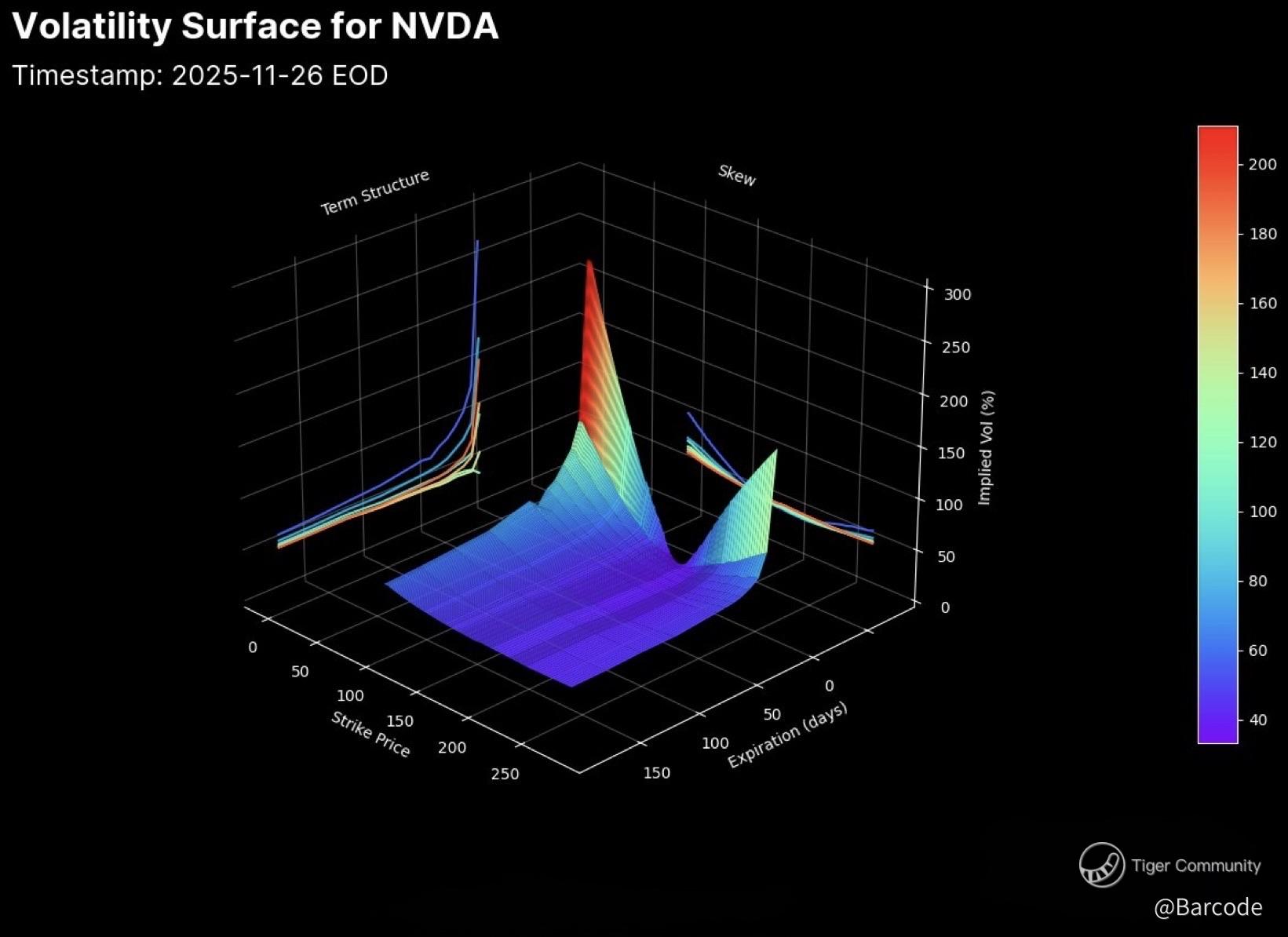 Iβm treating this period as a valuation recalibration influenced by credible competition and realistic capex expectations, not a structural break. Flow, IV behaviour, dark pool prints and gamma exposure suggest tactical opportunity. Googleβs TPUv7 push tightens the competitive field without derailing Nvidiaβs leadership in inference and ecosystem depth. I map Nvidiaβs 2026 growth path at roughly 55% CAGR with a 2 to 3% incremental share bleed. A return toward $200 requires hyperscalers to confirm spend visibility within the next sixty days.
