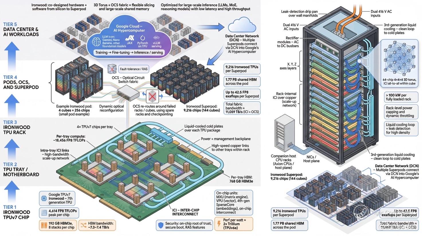 The competitive landscape is shifting, and Iβm treating Googleβs TPUv7 Ironwood as a legitimate alternative within specific training and inference stacks. SemiAnalysis outlined how TPUv7 delivers a fourfold leap over TPUv6 with tighter memory paths and power efficiency advantages. More importantly, at rack scale, the total cost of ownership lands 30 to 50% below Nvidiaβs GB200 or GB300 systems because Google avoids Nvidiaβs system margin and benefits from ASIC tuned inference.