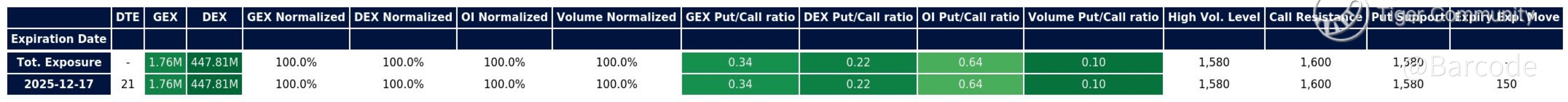 Platinum January 2026 OPEX positioning clustered in a single expiry with call dominance across GEX, DEX, OI, and volume, all sitting near 100% normalised readings. The range held at 1580 support and 1600 resistance which is outright bullish into the expiry window.