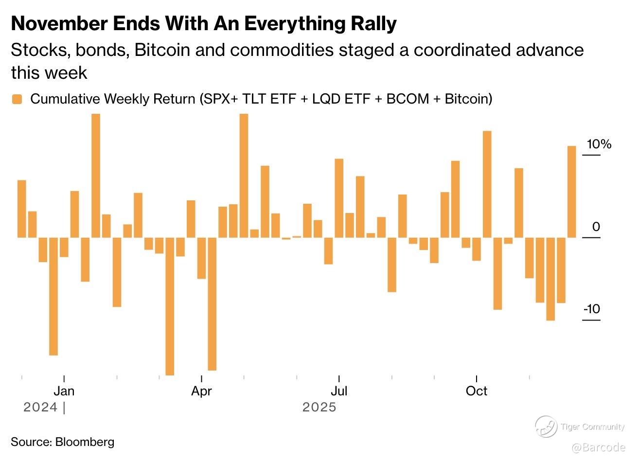 QT officially ends on 01 December. The TGA rebuild of USD 150B in Q1 injects early 2026 liquidity. CTAs turned fully long equities for the first time since July as volatility collapsed.