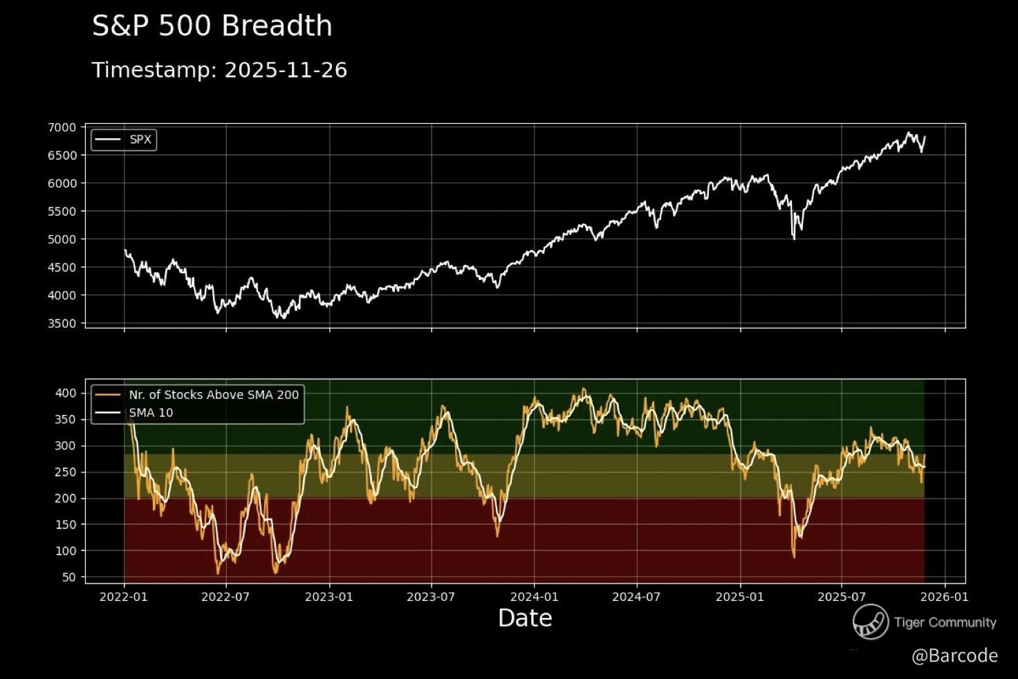I closed the month watching one of the sharpest reversals I have seen in decades. The S&P 500 erased a โ4.7% drawdown from 21 November and finished +0.1%, a 5.1% red to green swing that added roughly USD 2.75T in market cap in eight sessions. Breadth thrust, surging new highs, collapsing new lows, and a VIX at 16.35 confirmed a decisive shift back to buyers.