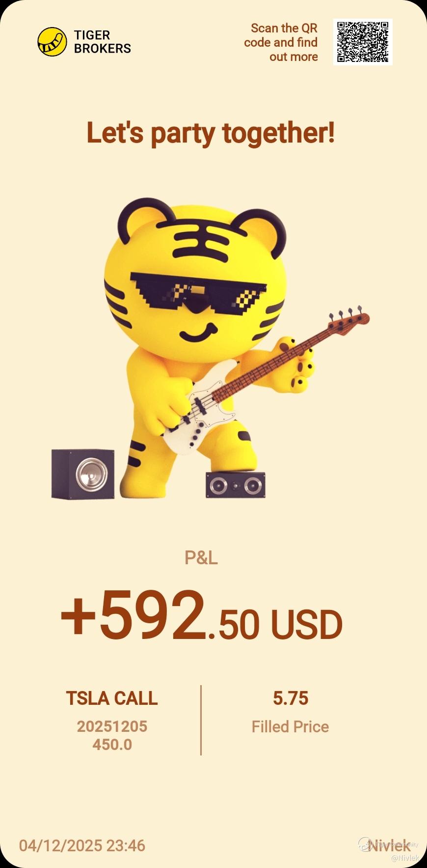 $TSLA 20251205 450.0 CALL$ 2nd scalp trade of the day. That's it for today folks😎✌️