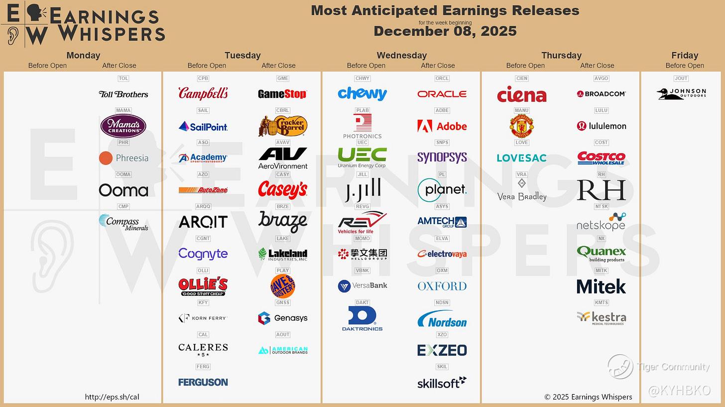 Several notable companies are scheduled to report their earnings in the coming week, including Campbell’s, Oracle, Adobe, Broadcom, and Costco.