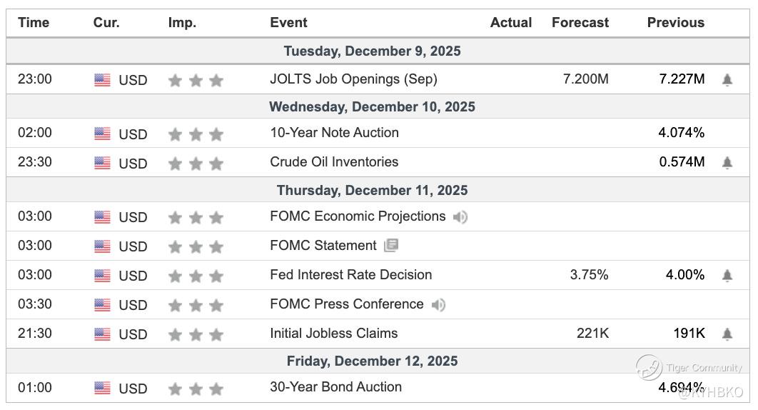 Economic Calendar: Key Market Movers (week of 08Dec25)