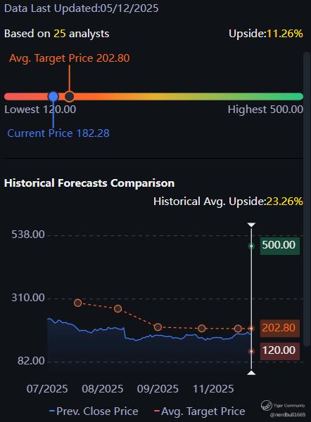 Based on 25 analysts from Tiger Brokers app offering 12 month price targets for Lululemon Athletica in the last 3 months. The average price target is $202.80 with a high forecast of $500.00 and a low forecast of $120.00. The average price target represents a 11.26% change from the last price of $182.28.