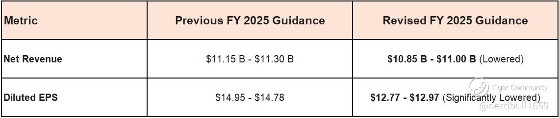 The company lowered its full-year guidance for both revenue and EPS, reflecting the US business challenges and the greater-than-expected tariff impact.