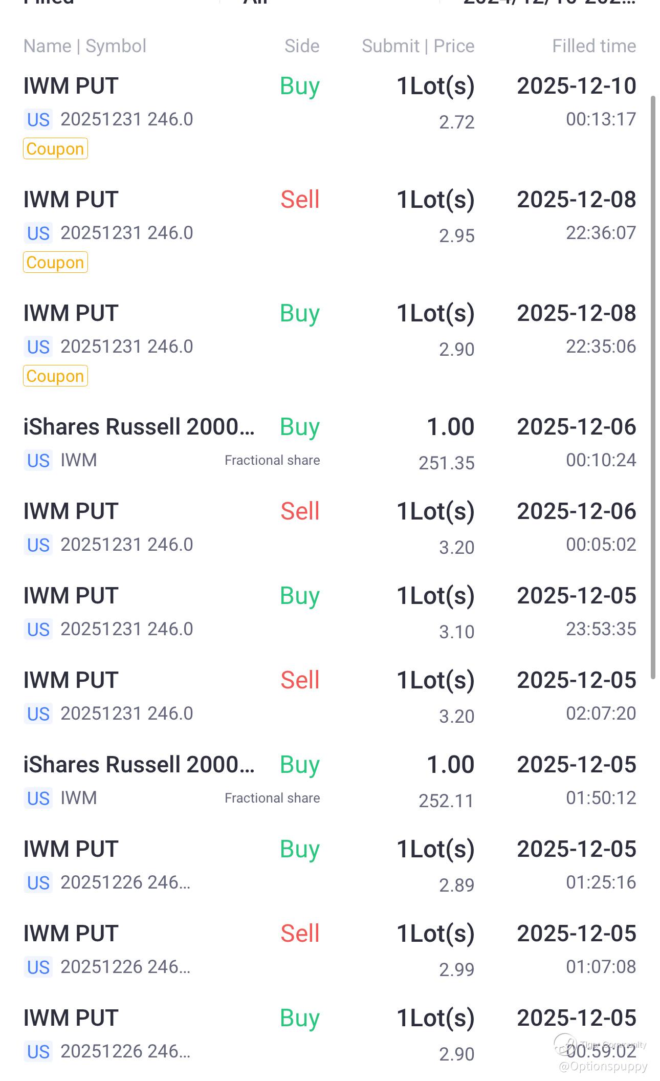 • Dec 5–6: Sold 246 PUT at $3.20, bought back at $3.10 ✅ small gain