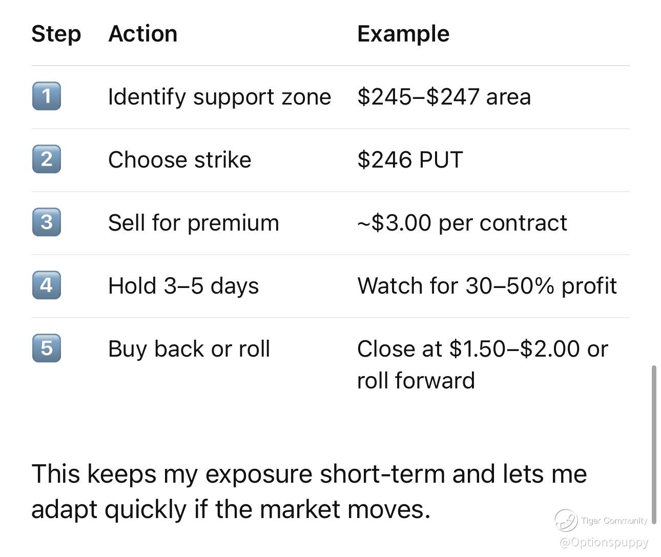 • 💵 Cash-secured: I always keep enough cash aside to cover the purchase (no margin).