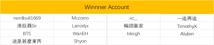 Yesterday's winners: