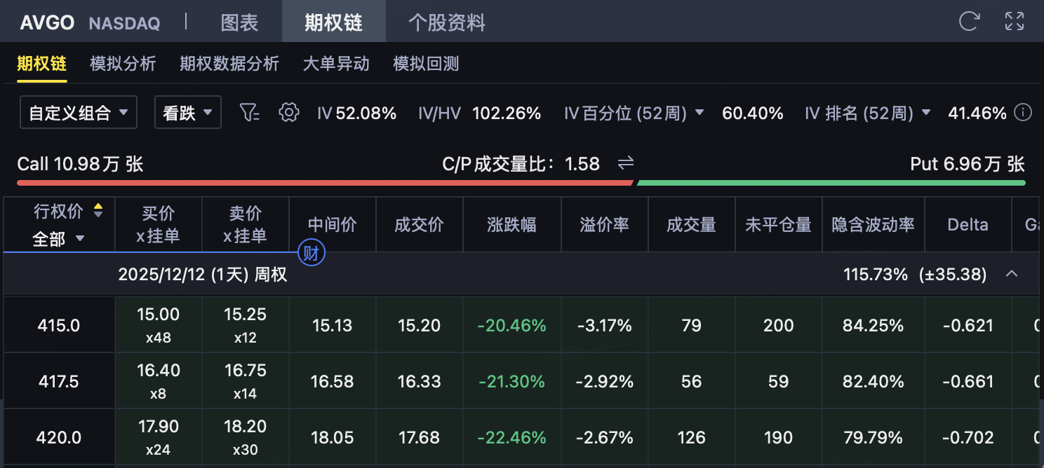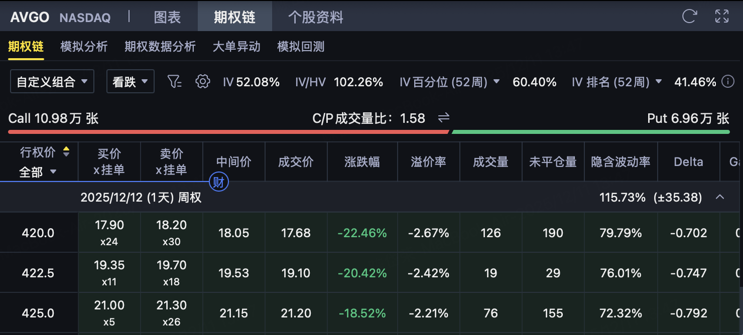 Applicable scenario: Investors expect Broadcom stock price before expirationModerate decline to around 415 or lower, but unwilling to bear all the risks of naked Put; Hoping to exchange limited losses for limited but controlled falling gains.