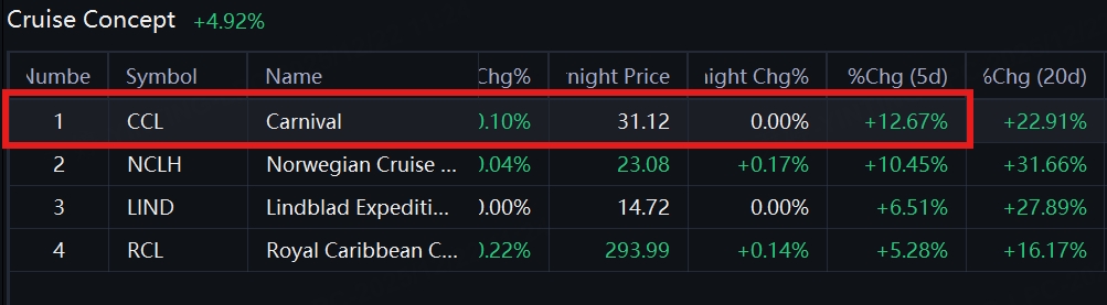 The best-performing concepts is Cruise Concept. Considering the different perceptions of the stock, this time TigerPicks chose $Carnival(CCL)$ to have a fundamental highlight to help users understand it better.