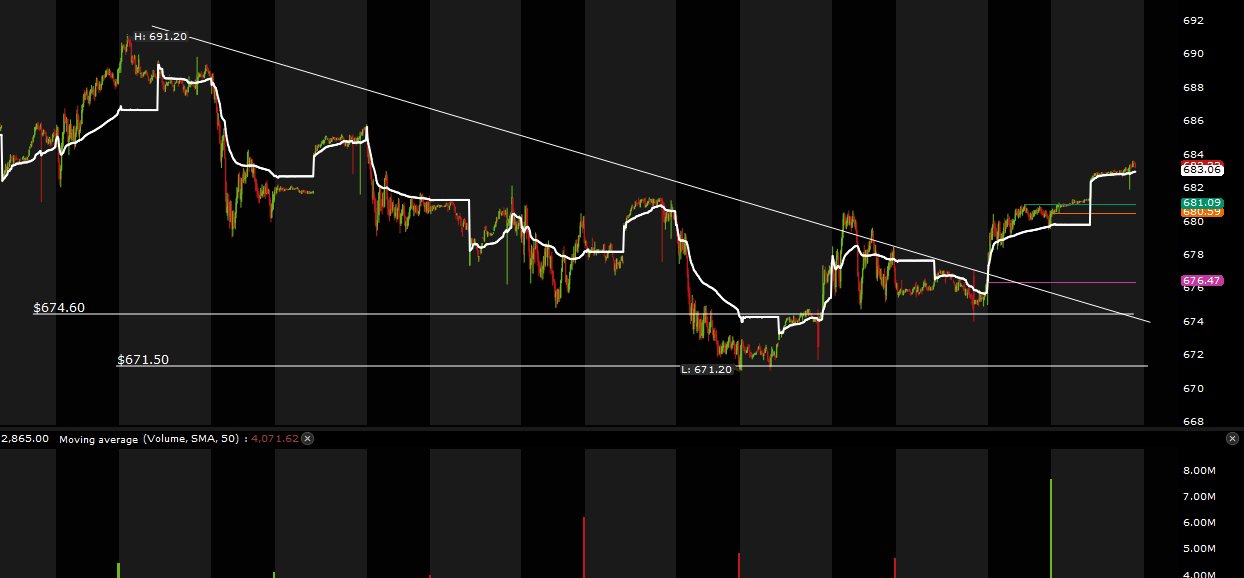 $SPDR S&P 500 ETF Trust(SPY)$ needs to hold above $675 this week to go higher towards $690 OR we can pull back under towards $670 to form DOJI on monthly chart. (check out chart to study it)