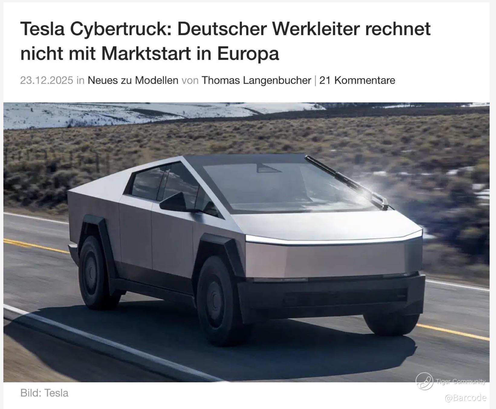Giga Berlin leadership has effectively ruled out a meaningful Cybertruck launch in Europe, citing homologation challenges around sharp edges, pedestrian safety requirements, and high-speed Autobahn regulations. Tesla is also actively seeking a new Head of Sales in Germany following a sharp sales decline throughout 2025. These are structural constraints, not surprises, and they are already part of the regional narrative.