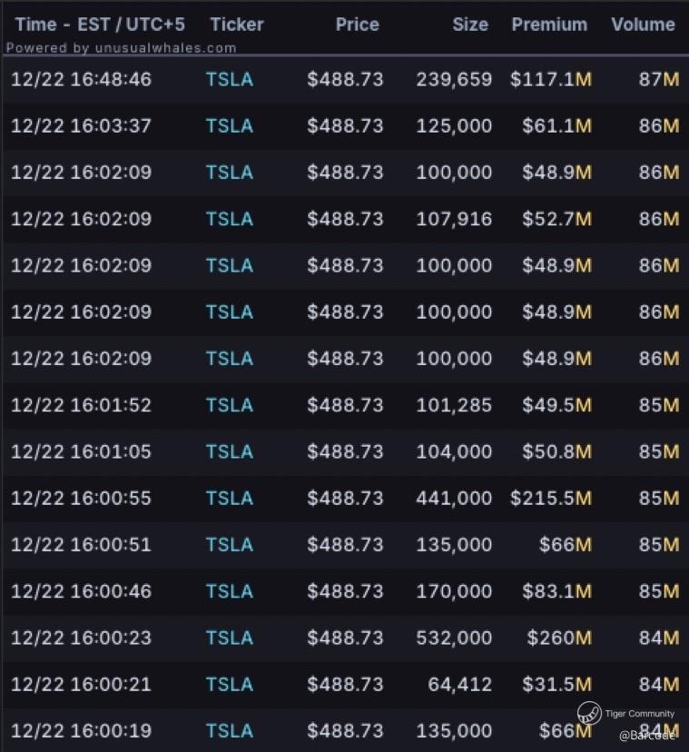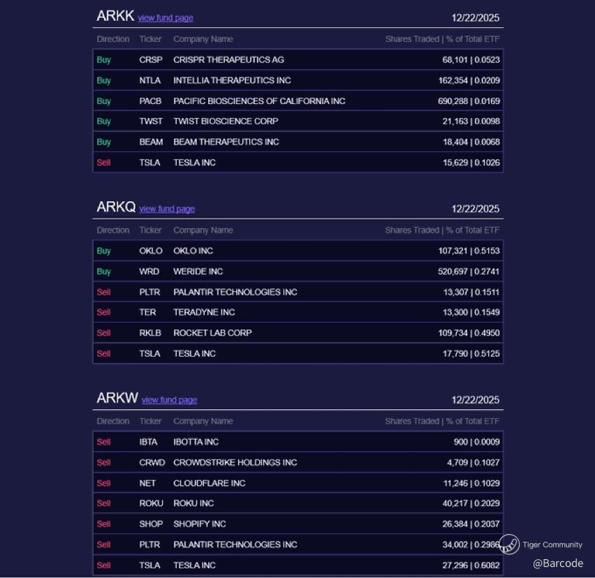 Institutional activity is clearly visible. TSLA saw more than $1.2B transact in dark pools around $488.73, while NVDA also printed over $1.2B near $183.69. These were the only two names in the MAG 7 to see that level of dark pool activity. That flow explains why $500 did not break cleanly. Liquidity was absorbed. Cathie Wood sold a total of 60,715 TSLA shares across ARKK, ARKQ, and ARKW. A long-time TSLA bull exited his entire position near $495. This reads as disciplined profit-taking at resistance, not a breakdown in conviction.
