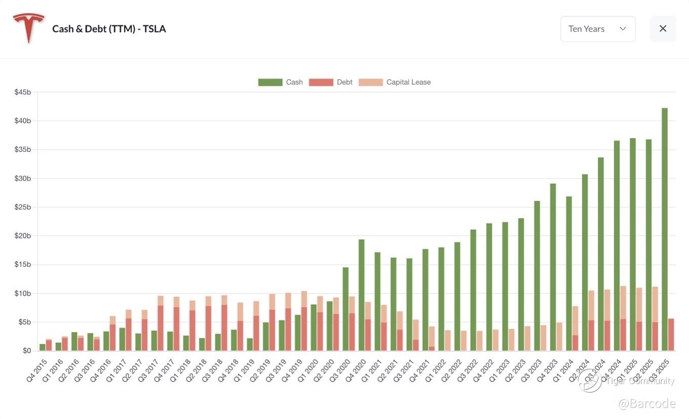 Tesla is sitting on the largest cash balance in its history, $42.24B. In a market that increasingly rewards self-funded growth, optionality, and strategic flexibility, that balance sheet strength continues to underpin downside resilience and long-term narrative durability.