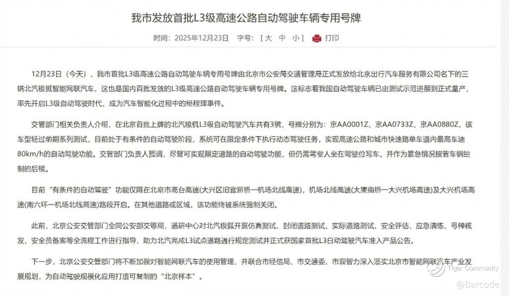 China continues to tell a different story. Beijing has issued its first batch of special license plates for Level 3 highway autonomous driving, marking a formal regulatory milestone even though the initial approvals were granted to domestic OEMs. The direction of travel matters. Regulatory frameworks are now being established, not debated.