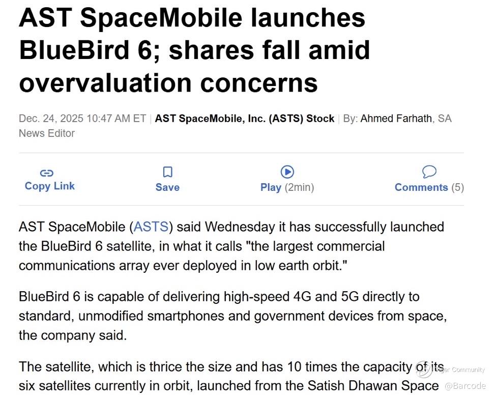 BlueBird-7 launches in January. Early service activation follows in 2026, with a roadmap toward 45–60 satellites. At scale, this stops behaving like a speculative space story and starts behaving like telecom infrastructure coming online.