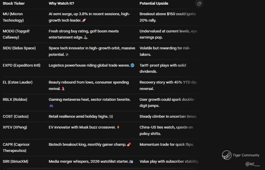 Here’s a killer lineup of stocks to stalk today, blending strong buys, growth beasts, and buzzworthy picks:🕵️♂️ $Micron Technology(MU)$ $Roblox Corporation(RBLX)$ $XPeng Inc.(XPEV)$ $Capricor Therapeutics(CAPR)$ $Sirius XM(SIRI)$